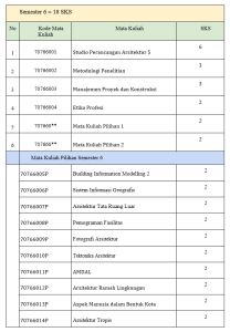 MATA KULIAH PROGRAM STUDI ARSITEKTUR
